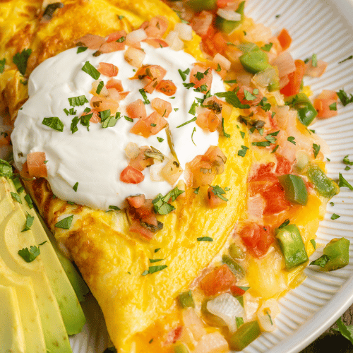 3 Eggs, Avocado, Tomato, Jalapeño, Onion and Mozzarella Cheese